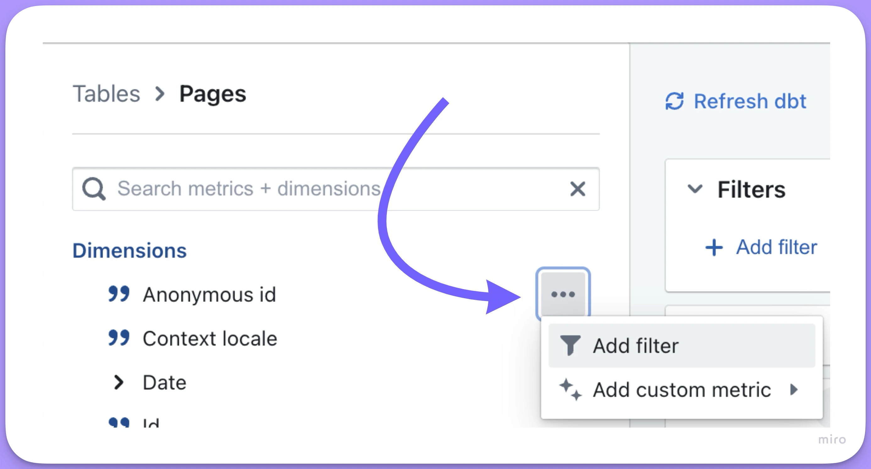 It’s easy to add filters directly from the list of fields in the sidebar. Just click on theoptions for a field, then click add filter.