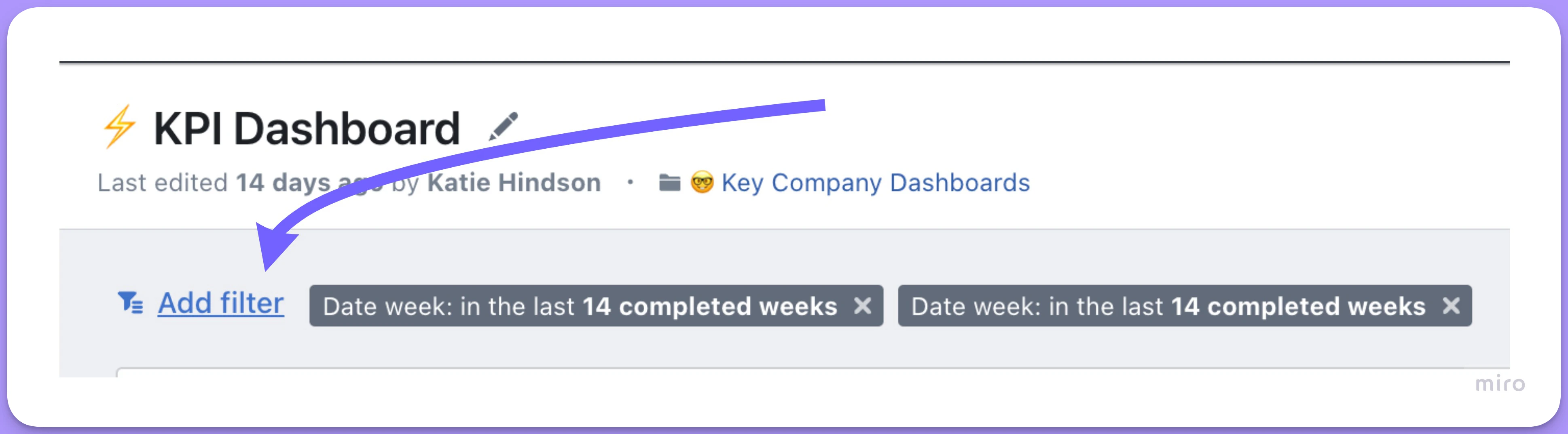 Add filters button on a dashboard. Head to edit mode and toggle the eye icon next to the Add filters dropdown to hide or show it. When hidden, end users are restricted to only using filters that have been specifically set up in dashboard edit mode.Adding temporary filters using the add filters button