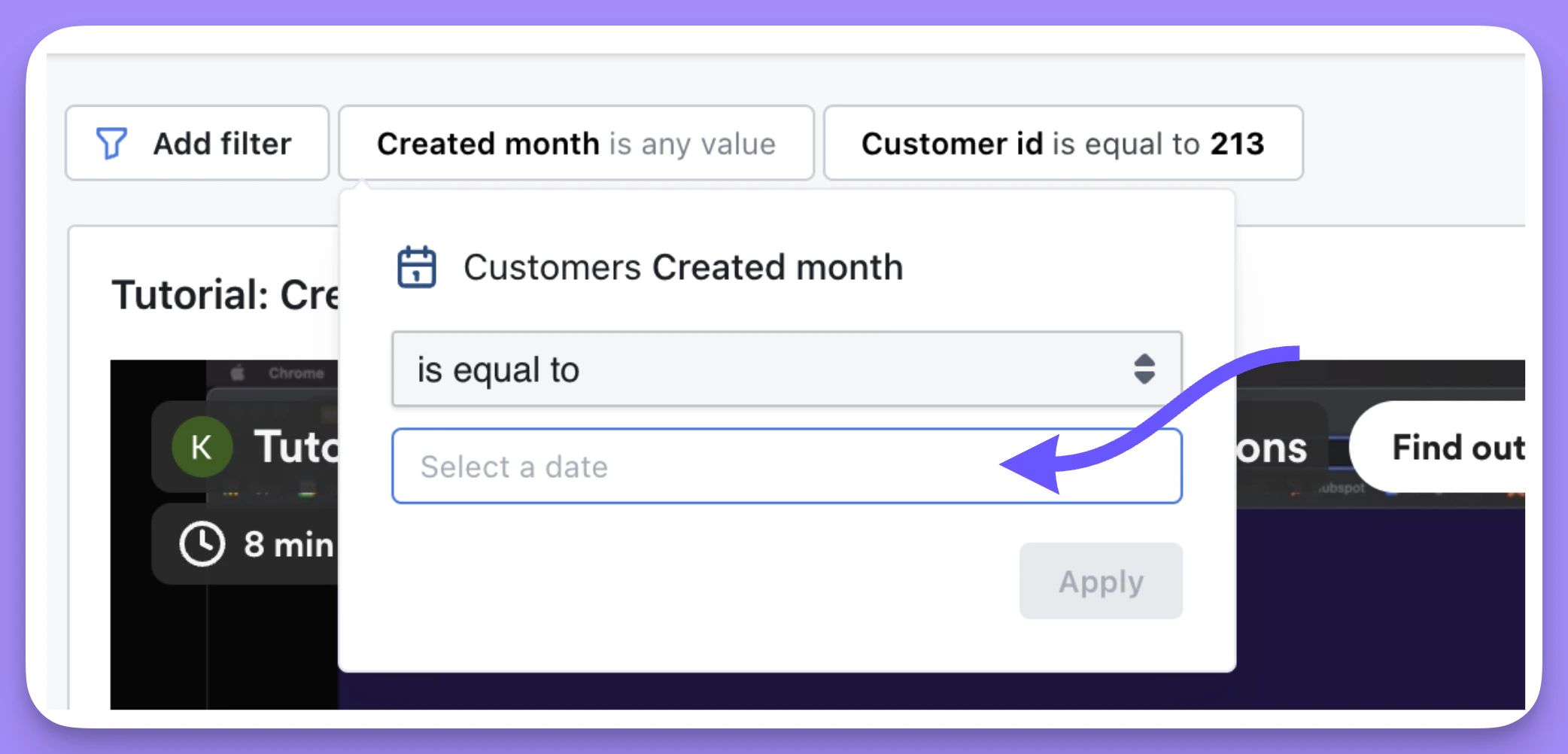 To learn about the types of filters we have available, check out the filters reference doc.