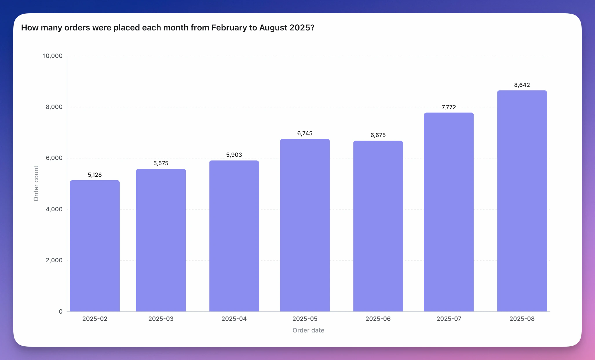 • compare things between different groups (e.g. the number of orders you have by product type)